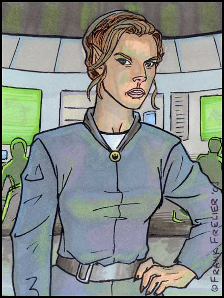 Le "Lieutenant" Pelan qui, j'ai oublié de le précisé est Major en réalité. Il a dû monter en grade depuis les derniers échanges avec Kevan. La Colonelle Kamen Morgue du BSI impériale, spécialisée dans l'extorsion d'information :