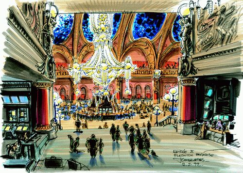 Un groupe de quatre « clients » - un diplomate au physique d'ancien officier militaire, un droïd de protocole d'un modèle novateur et inconnu, une jeune femme garde du corps et un jeune homme... en robe de chambre marron sommaire - décide d'en apprendre plus et déverrouillent un des ascenseurs transparents pour quitter la salle de casino.