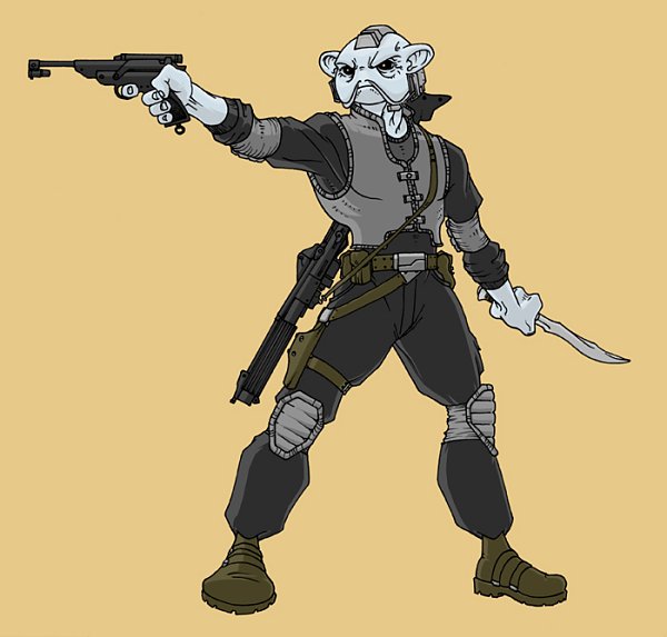 Eban, dit « Sournois », un sullustain élancé, vif d'esprit autant qu'avec un couteau ou un blaster léger. Il emporte avec lui un kit d'infiltration rempli de matériel électronique et informatique « toujours utiles » selon lui.