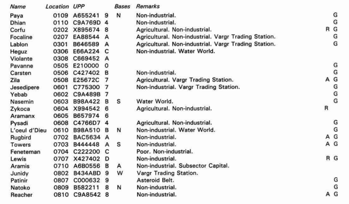 D'ailleurs, dans des secteurs frontières comme le votre, loin des routes commerciales principales de l'Empire, le TL moyen est de 11 (comme sur Aramis) et non de 12 et il est fréquent d'avoir des planètes agricoles ou qui n'ont qu'un TL pré-spatial.